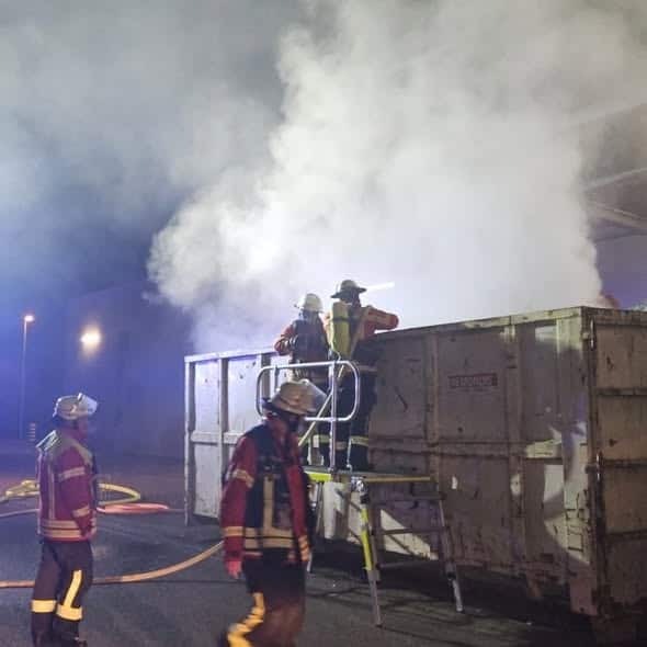 Neben einem Lebensmittel-Geschäft kam es am Silvester-abend zum Brand in einem Müllcontainer. Da der Container sich nicht öffnen ließ, wurde er mit Lösch-Schaum gefüllt.