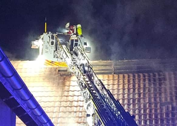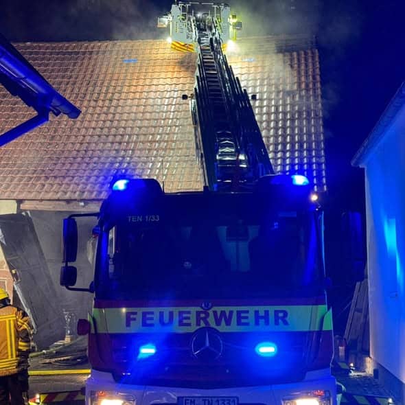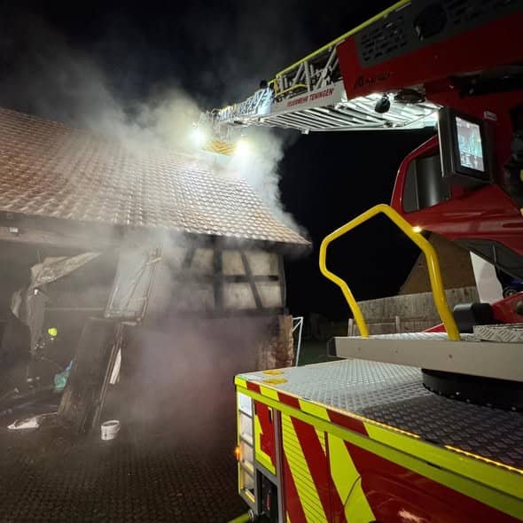 Wir unterstützten in der Neujahrsnacht die Feuerwehr Emmendingen in Kollmarsreute als 2. Drehleiter beim Brand eines Schopfes, der direkt an einem Wohnhaus angebunden ist.